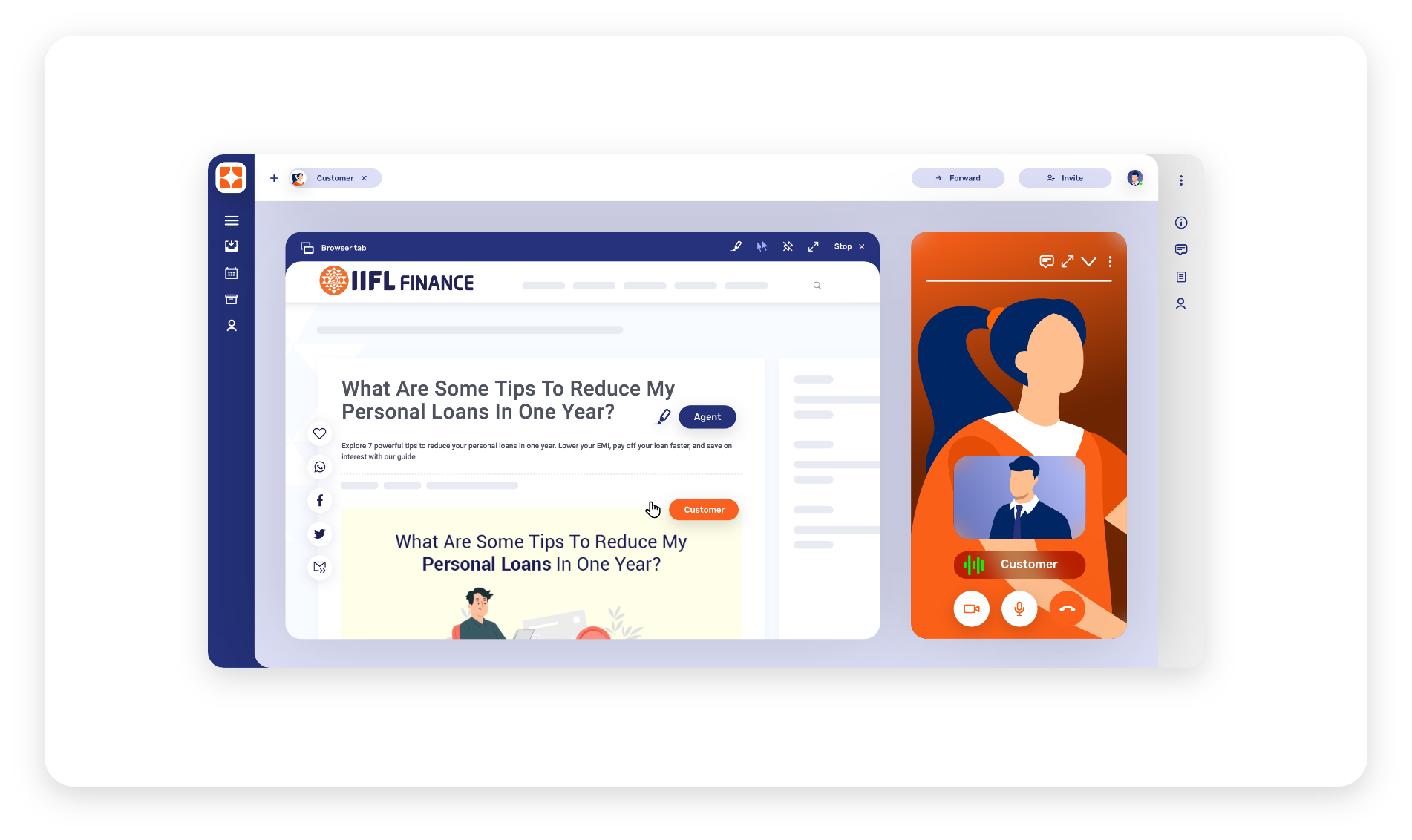 Berater können eingebettete Co-Browsing-Sitzungen hinter authentifizierten Bereichen wie der Wealth-App oder dem Kundenportal starten. Auf diese Weise können Berater den Kunden in Echtzeit unterstützen, sei es bei der anfänglichen Onboarding-Phase oder bei der laufenden Betreuung ihres Anlageportfolios und mehr.