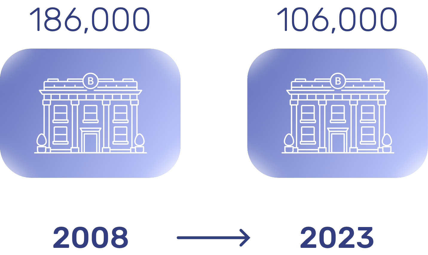 Of course, there is no denying that bank branch networks have been struggling in recent years. While the trend slowed somewhat since the world bounced back from COVID, there are still a large number of closures in the US. It’s the same story in the EU where there was a fall in bank branches from 186,000 in 2008 to just 106,000 in 2023.