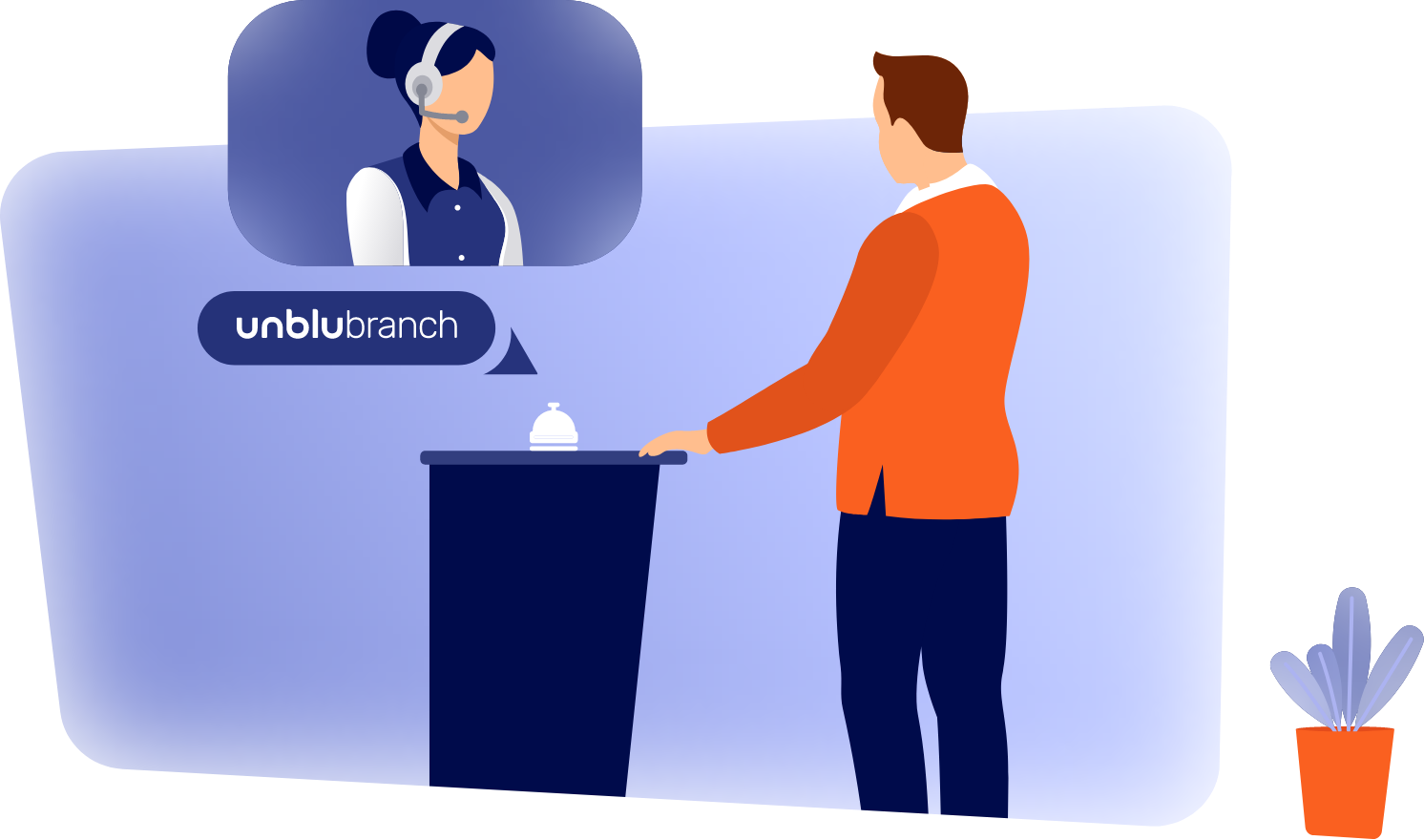 Unblu Branch is an innovative branch solution that allows you to optimize your branch network and remain at the heart of your local community. With remote agents and advisors able to serve multiple branches, our interactive, on-site solution is cost-effective, profitable, and provides customers with a broader service offering at any location.