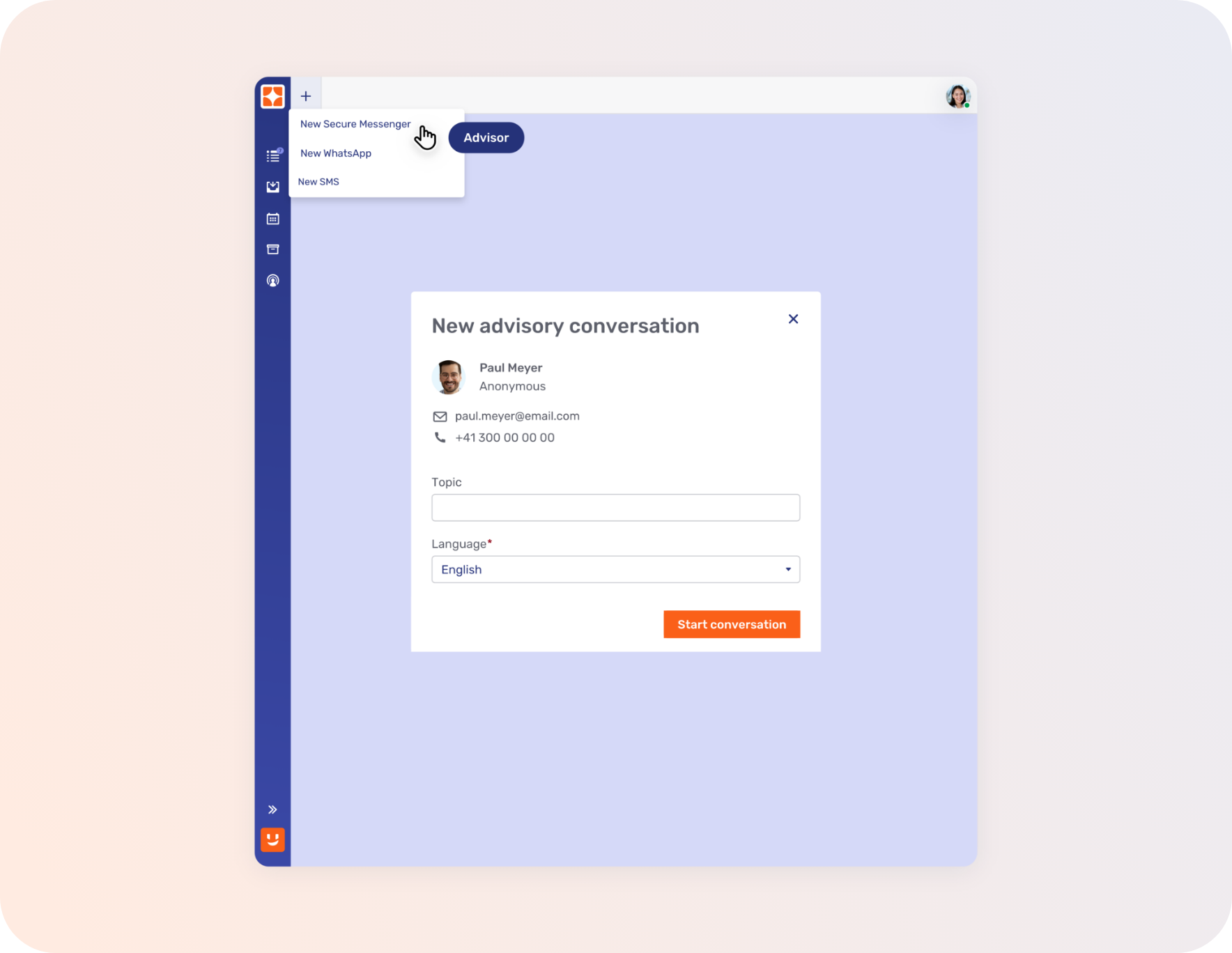 This means that all chat threads, documents, call histories, performance tracking, client profiles, investment portfolios, and more are available on the dashboard that you already use. What’s more, each message is connected to the client’s record. As a result, you can get access to full advisory context across interactions to ensure service continuity including data warehousing for security and compliance.