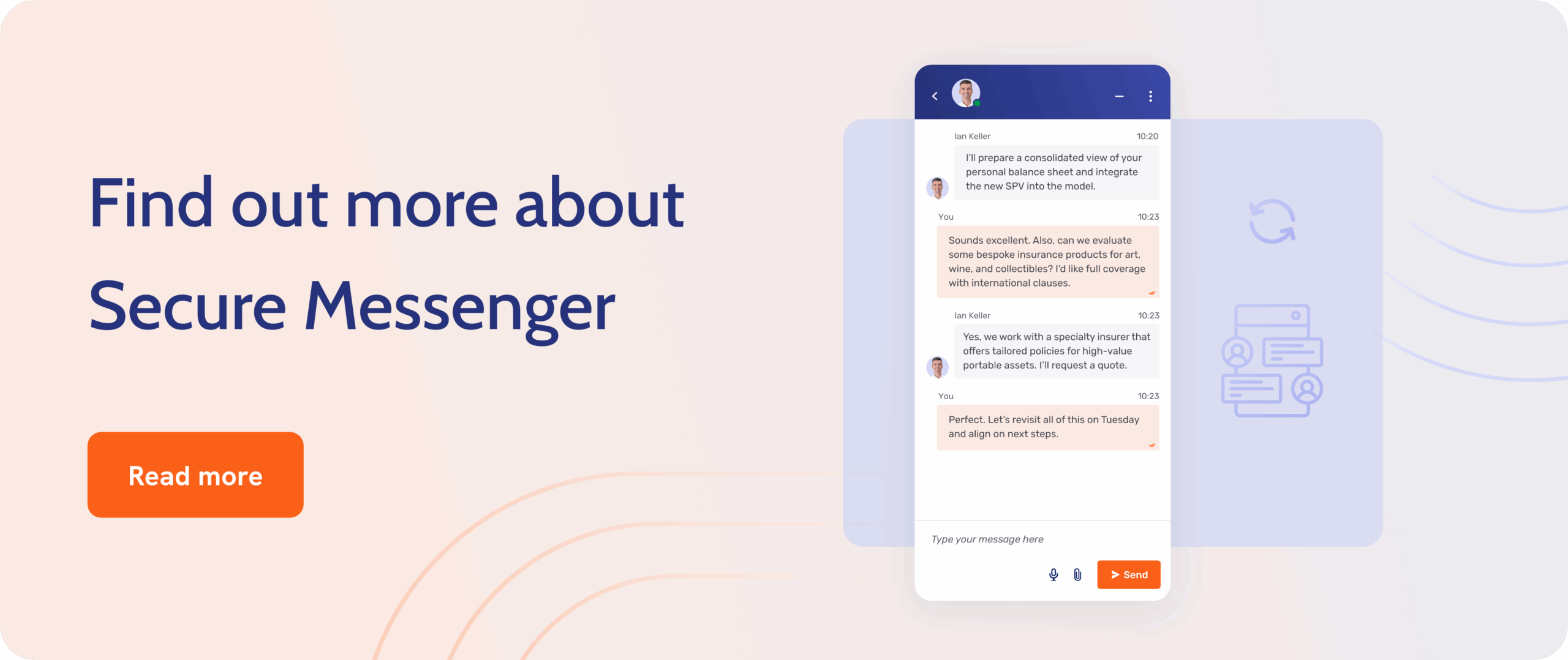 Individual advisor and client relationships are the backbone of any successful collaboration between a bank and a company. Secure Messenger offers a natural and personalized method of back-and-forth communication that mimics the way we communicate in our everyday lives.