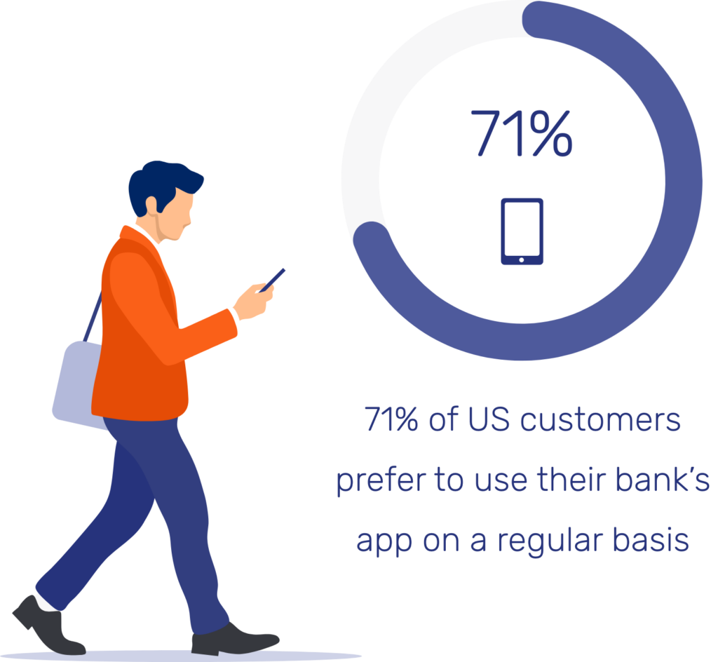 Customer preference for mobile banking apps is going from strength to strength. In the US, there is proving to be a steady uptake in digital banking usage through to 2025 and a reported 71% prefer to use their bank’s app on a regular basis.