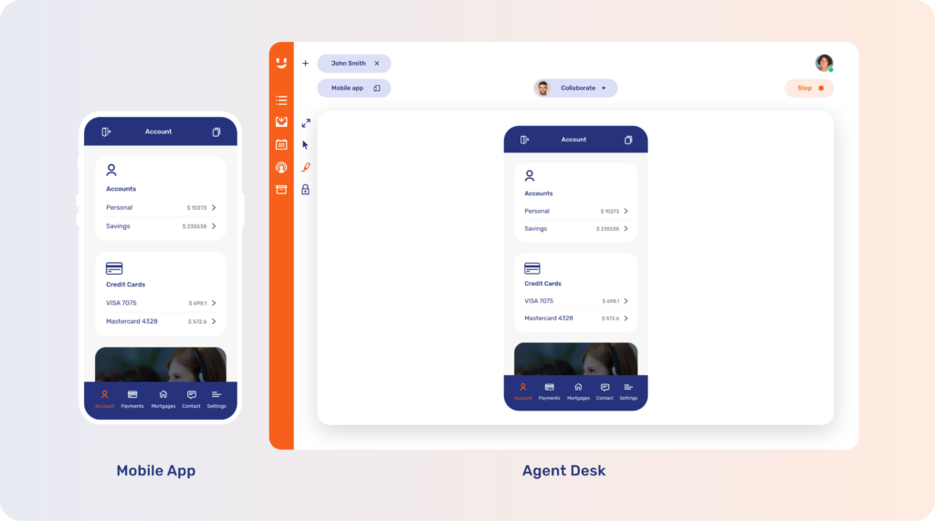 However, the exact situation can be transposed to an app context, where the agent would launch an app-based Co-Browsing session (i.e. Co-Apping) to help the customer in the relevant environment.