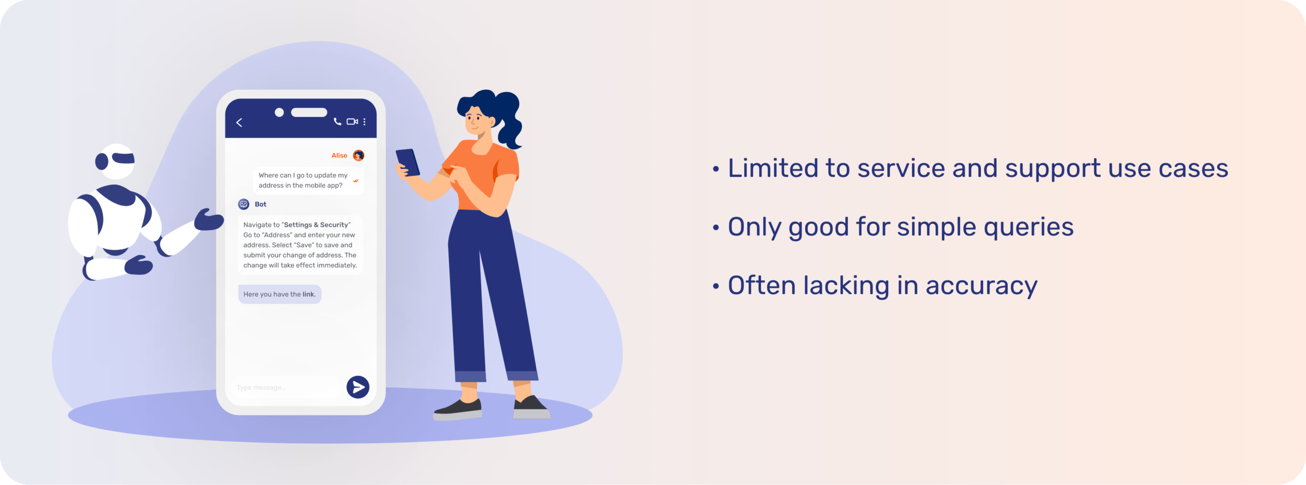 Decipher long-tail intents to produce more accurate bot responses for informed decisions, which are taken from the organization’s own knowledge database to ensure accuracy. Customers can self-serve on even complex issues that don’t require human support.