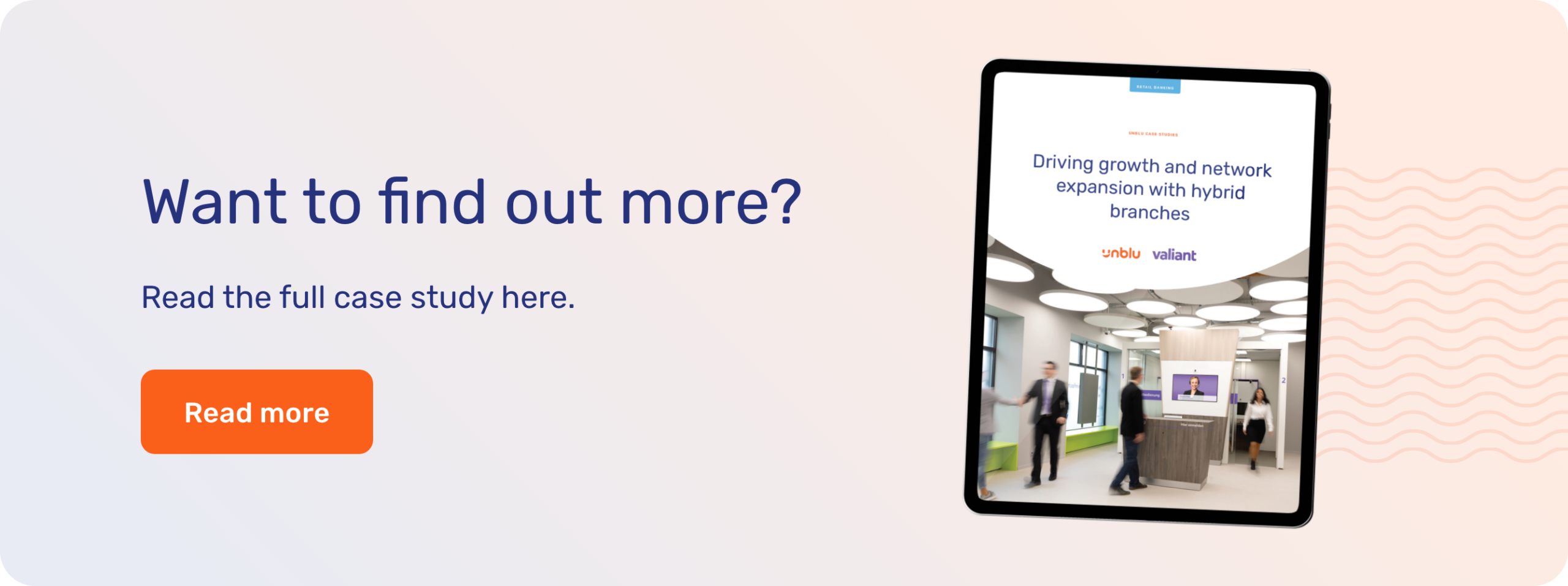 This is exactly what the Swiss retail bank Valiant Bank did when faced with falling in-branch footfall. By embracing a hybrid approach, Valiant was able to extend its opening hours by adding a digital reception. This meant that one agent could serve multiple locations remotely, which cut costs while guaranteeing quality customer service.
