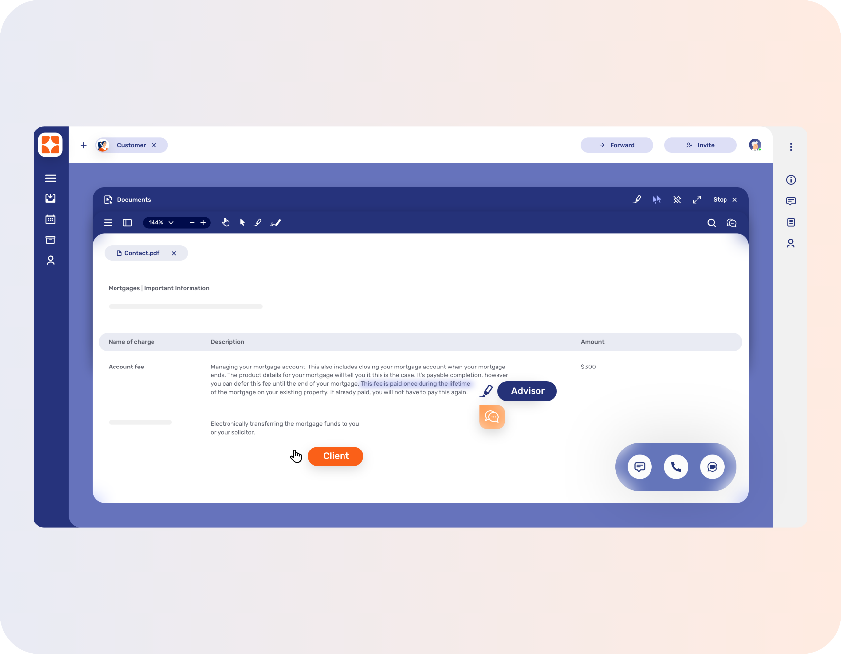 With a host of features, such as highlighting, annotation, and more, as well as strict privacy protocols, you can onboard new or prospective clients, provide financial advice, or simply support your clients as if you were in the same room.