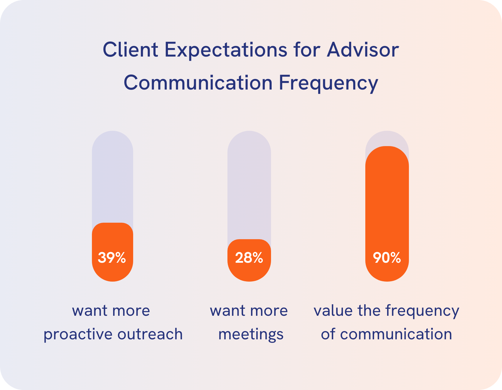 An Accenture study found that39% of clients want more proactive outreach from their advisors and 28% would want more client meetings too.