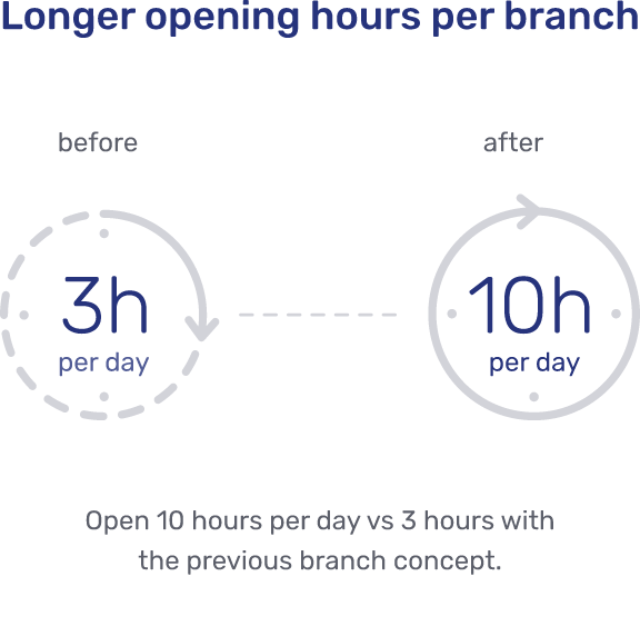 Valiant Bank is based in Switzerland and offers a range of retail banking services for private individuals and SMEs. From 2014 to 2017, there was a notable decrease in the number of personal assisted transactions, which fell by 35% overall. In response, Valiant reduced branch opening hours and, by the end of 2016, over half of the branches were open for just three hours a day.
