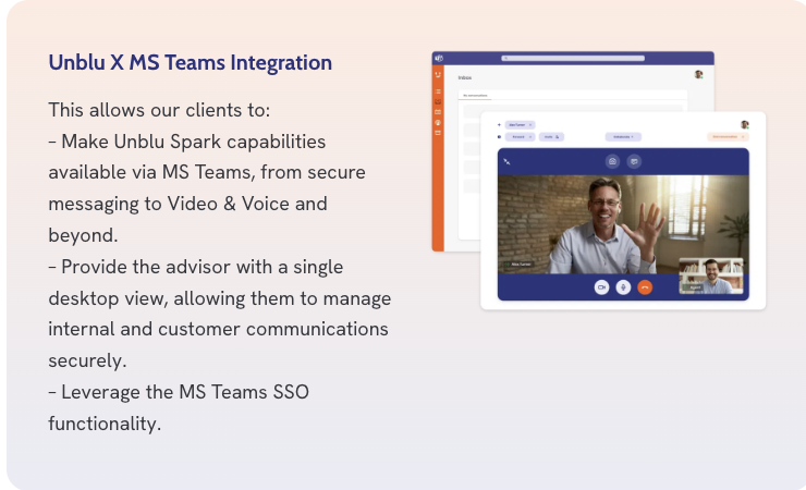 Unblu’s flexible conversation parameters and unique capabilities, such as hidden participants and internal messages, allow our clients to retain the dynamic of this key duo within their digital client interactions.