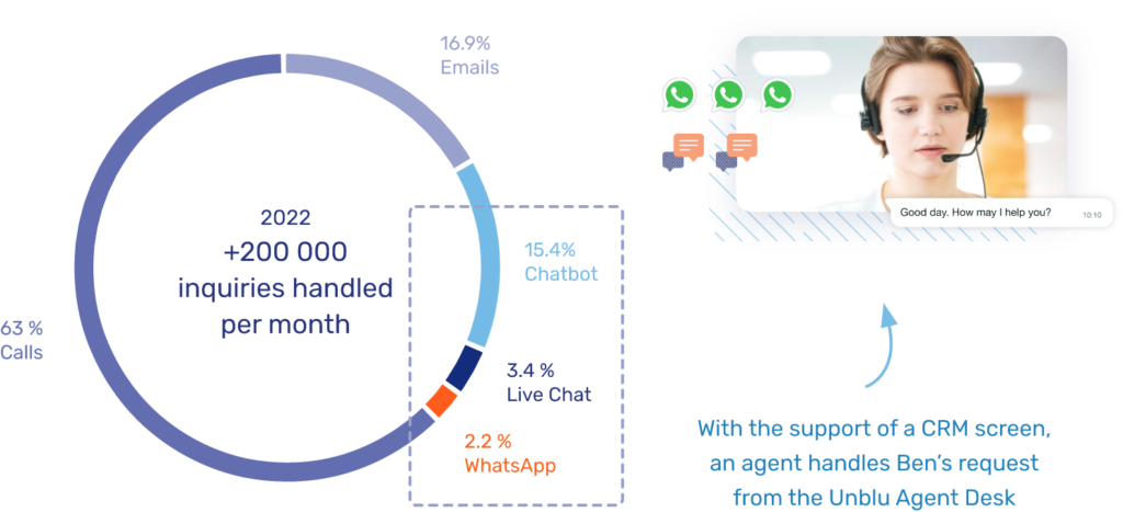 “Within a few weeks of launching our WhatsApp channel, we already had more than 4000 inquiries, reinforcing our conviction that when it comes to client service, choice is key. Moreover, Live Chat and WhatsApp have proven to be much more effective in achieving a high FCR”